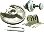 Rack and pinion steering components and pedestals.